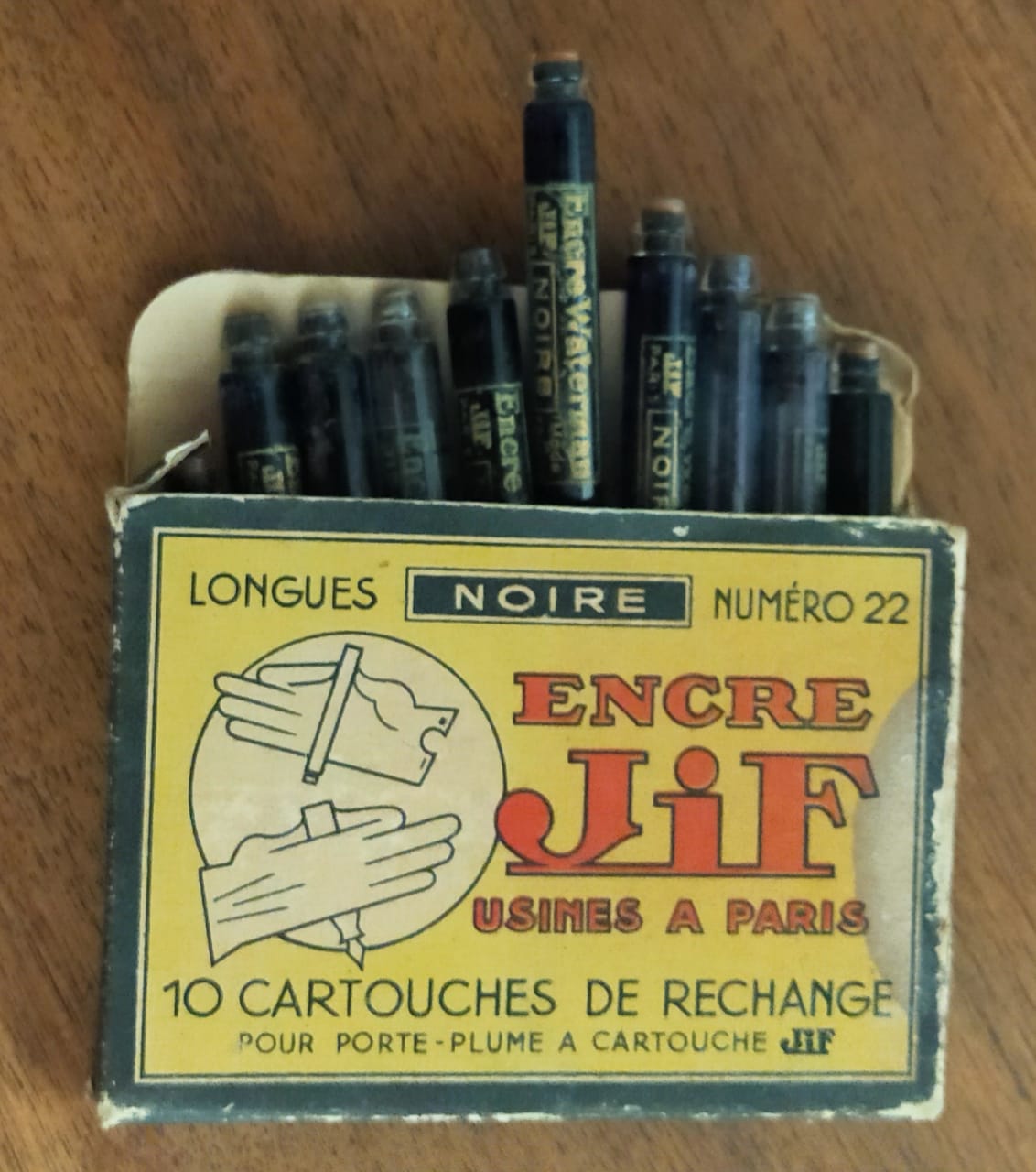 Waterman was the first company to market packages of glass cartridges which could be bought to be used with the innovative JIF pen.