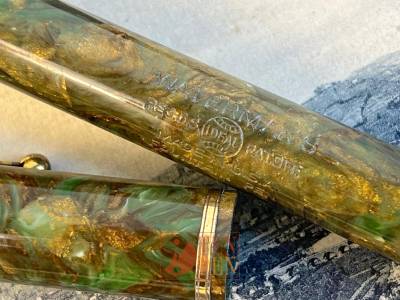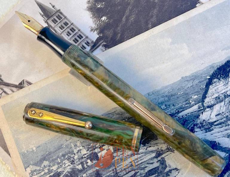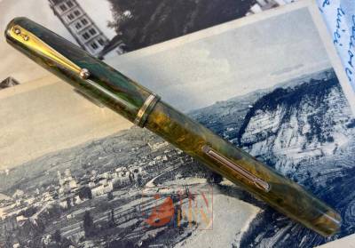 In the mid 1920s all pen makers started looking for new materials to replace ebonite in order to add color to their pens. The first colourful pens had been manufactured by Parker and Sheaffer before 1925 using first red ebonite and then the new colourful material which was called Permanite, actually celluloid. In a very short time, ebanite was abandoned and all the major pen companies offered colourful celluloid pens in various models and sizes.