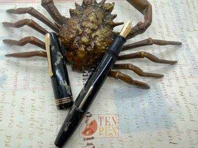 This pen is an oversize in marbled gray celluloid and it is in excellent condition.