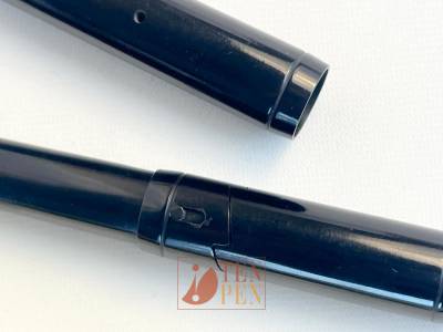 The design is reminiscent of Moore pens as well as of Waterman's sleeve fillers but this pens is a twist filler with a unique Z-shaped locking/unlocking mechanism.