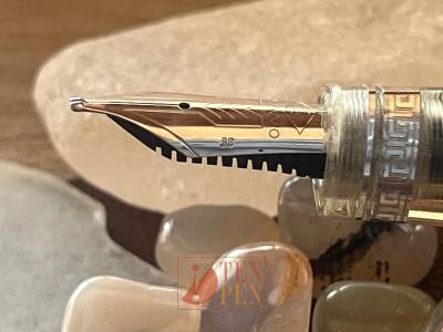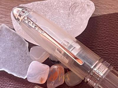 This Omas 360 vision is an unusual version as it is fitted with the very precious diamond clip which was used by Omas for a special edition of 360 and Mezzo models. The sparkling clip gives the pen an extra charme which is further enhanced by the ulta rare BB nib which can make every lover of thick lines very happy.