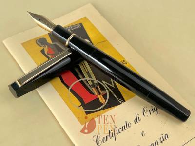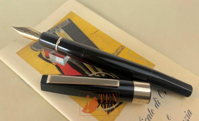 The CS is actually a very refined piston filler with friction cap which sports a beautiful spear-shaped 14 ct nib. The pen was manufactured in black celluloid in now size only and it is very light in the hand.