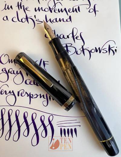 This Omas 556/F is part of the army production and it is fitted with a very responsive and springy Omas Extra Lucens nib which is very pleasant to use.