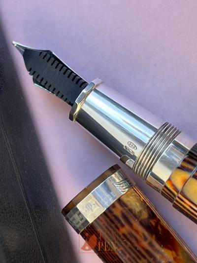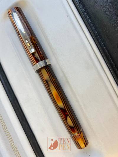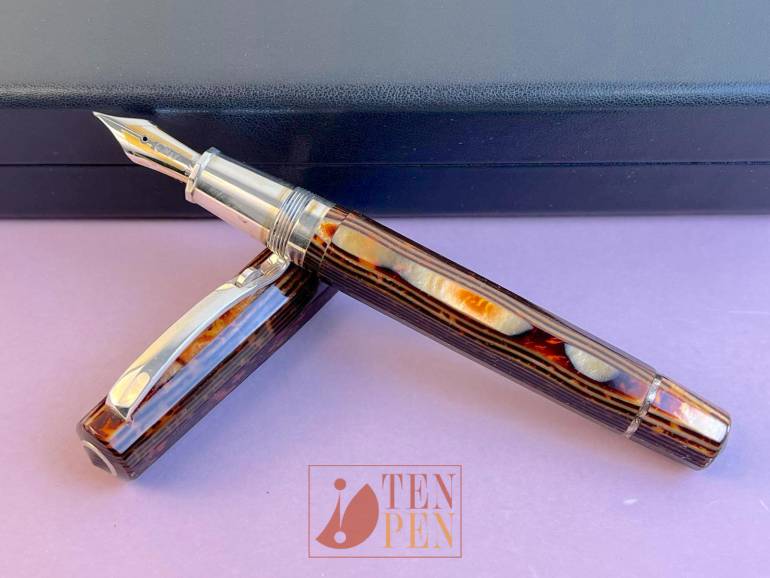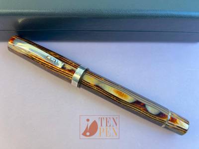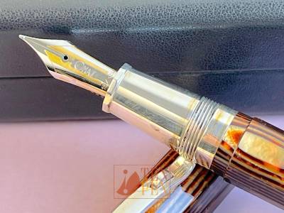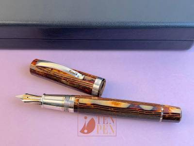 This Gran Paragon in arco bronze celluloid with sterling silver section is a grail pen for most collectors.