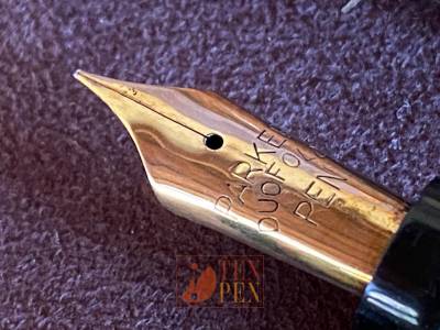 This Parker Duofold Deluxe is in excellent condition with no cracks nor damages. The barrel is lightly darker than the cap. It is fitted with a Parker Duofold nib which is rigid with an F tip.