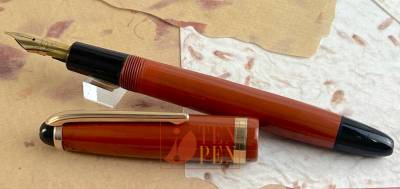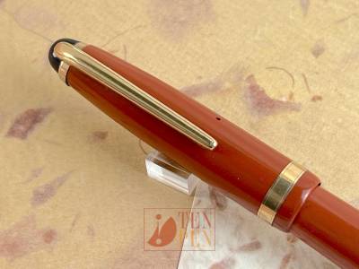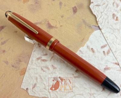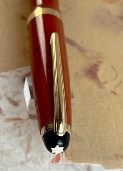 This Montblanc 244 is a button filler in red celluloid and it is in excellent condition. It is a medium-sized pen suitable to fit a male medium or a feminine hand.