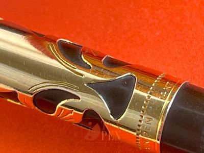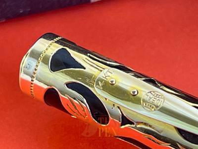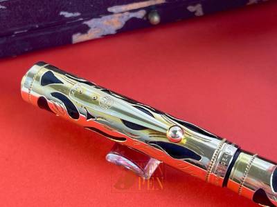 This 512 1/2 is a precious example of early filigree in solid 14 carat gold in perfect condition. The pen is flawless and is fitted with a superb, extremely flexible EF nib.