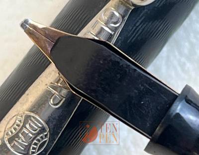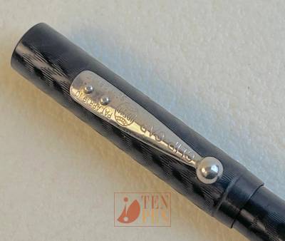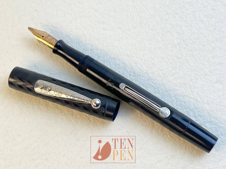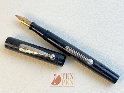This small Waterman 52 1/2 V has a very pleasant stub nib. The pen is manufactured in black ebonite and is in excellent condition with very minimal signs of discoloration.