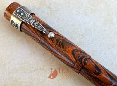 This Waterman 52 in ripple red ebonite is in excellent condition with no differences in color between cap and barrel. The pen is fitted with beautiful, super flexible waterman nr. 2 nib and the cap carries a very elegant silver mobile clip with floral decoration.
