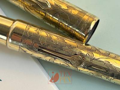 WATERMAN 52V WITH ITALIAN HAND ETCHED 18 KR OVERLAY- SUPERB NIB