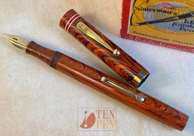 The pen is fitted with a 9 ct solid cap which places its origin in the UK, where Waterman products were generally enriched with 9 ct gold trimmings.