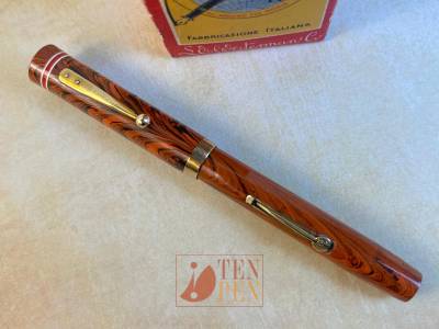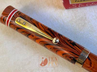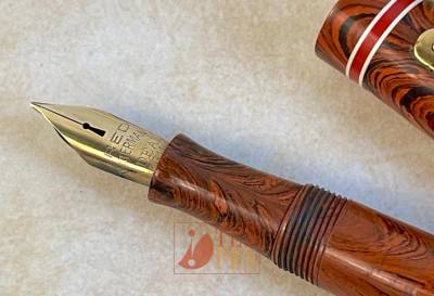 This Watermannr. 5 with red cap band and red nib is in excellent condition with very sharp ripple waves and a bright colored cap band. The nib is very responsive and nicely flexible.